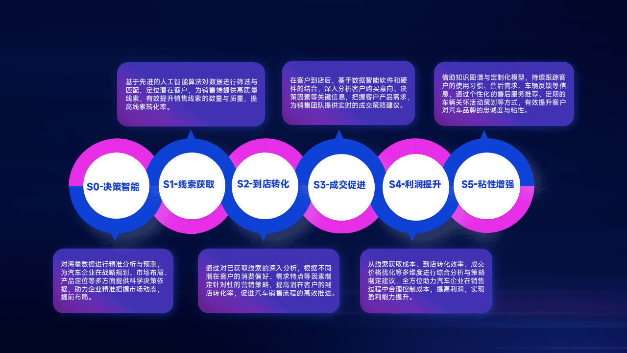 通过拓宽潜在客户来源、、、优化线索分配并提高到店转化率,,以增强销售效率。。同时,,,利用线索数据不断优化分析模型,,,,有效提升转化率,,,扩大营销影响力。。。。